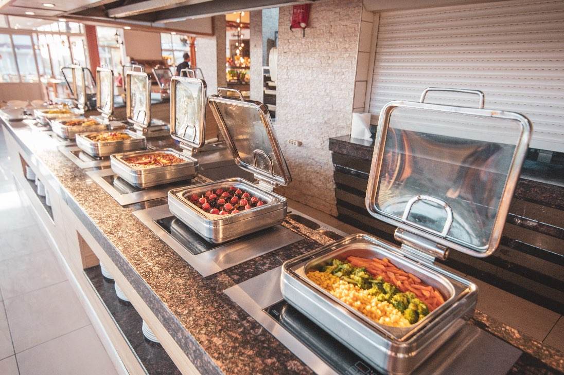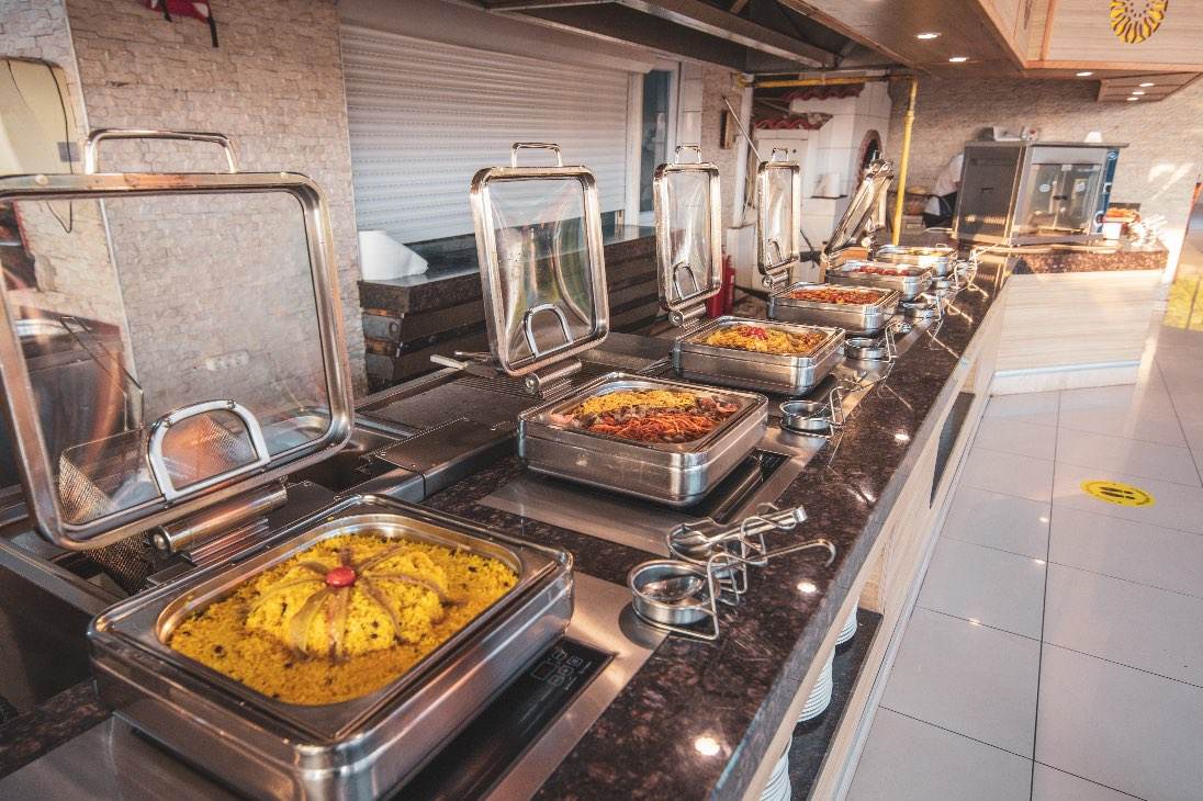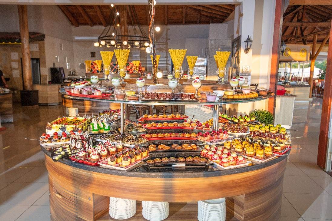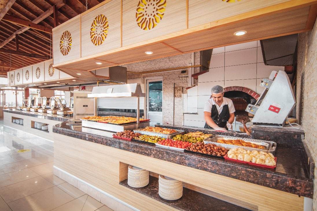 Nicholas Park Hotel’de Her Şey Dahil konsepti kapsamında zengin açık büfe yemekler ve gün boyu atıştırmalık servisleri sunulur.