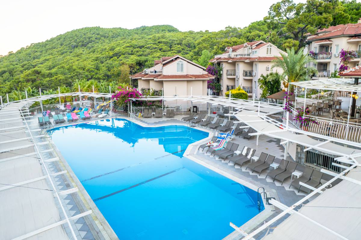 Ölüdeniz’in yemyeşil çam ormanlarıyla çevrili konumunda yer alan Nicholas Park Hotel, doğayla iç içe huzurlu ve konforlu bir tatil deneyimi sunan aile dostu bir tatil otelidir. Her Şey Dahil konseptiyle hizmet veren tesisimiz; yüzme havuzları, kaydıraklı eğlence alanları, animasyon aktiviteleri, çocuk kulübü ve lezzetli açık büfe restoranıyla hem yetişkinlere hem çocuklara unutulmaz bir tatil sunar.